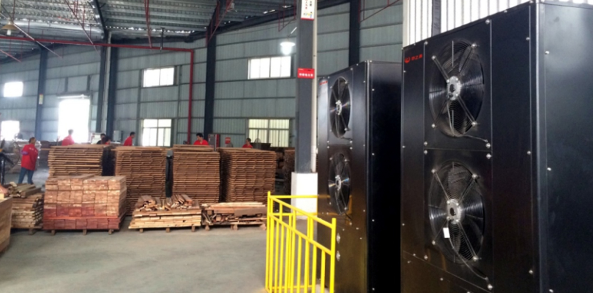 2)針對(duì)木材加工,提供原木鋸材烘干、板材二次干燥。采用熱之源研發(fā)的工業(yè)級(jí)高溫?zé)岜脵C(jī)組制熱,配套木材智能